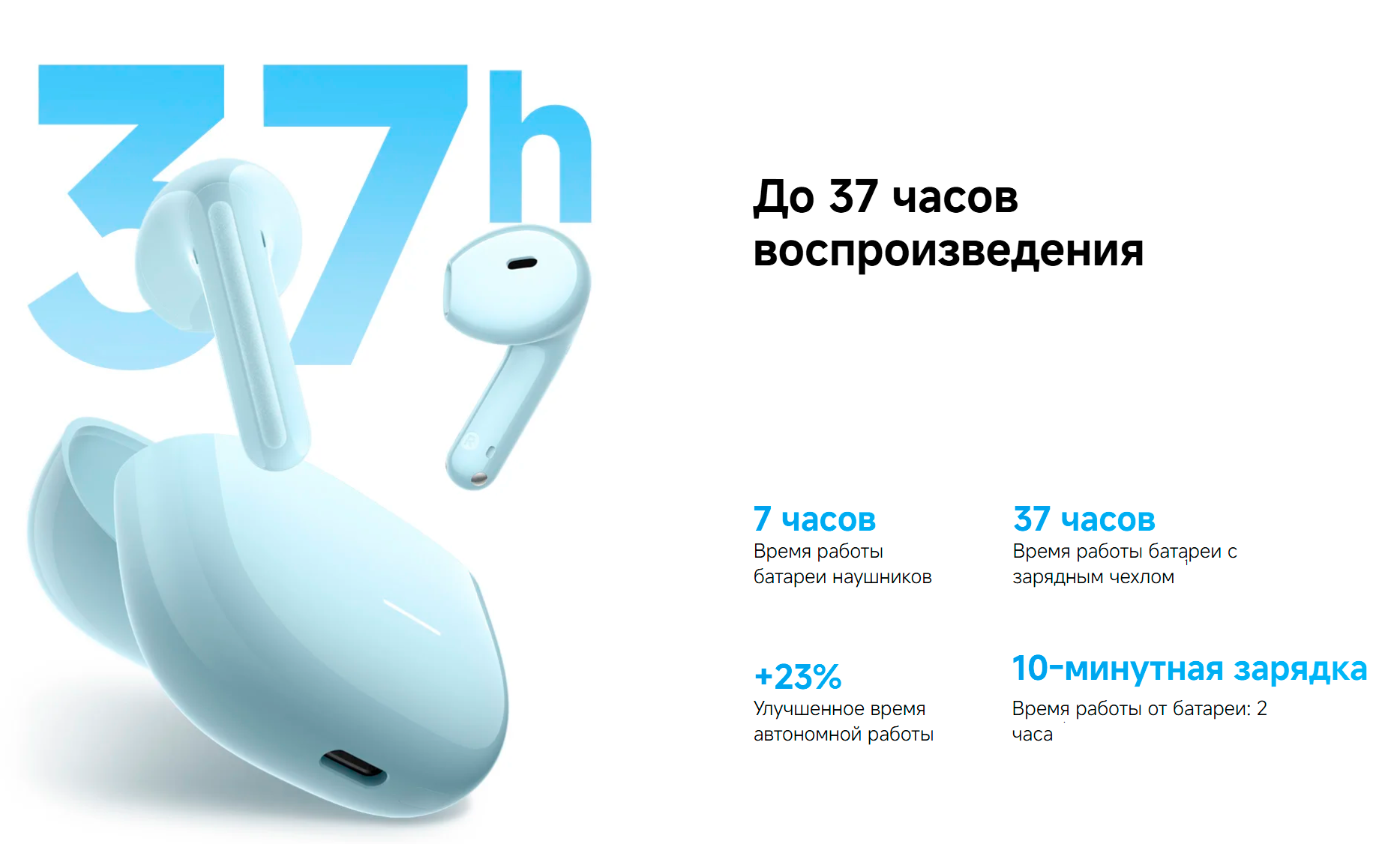 Время работы (с зарядным кейсом) до 37 ч